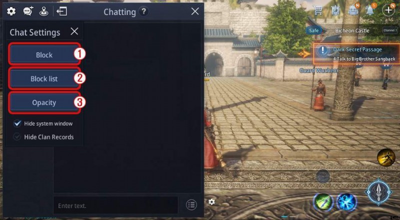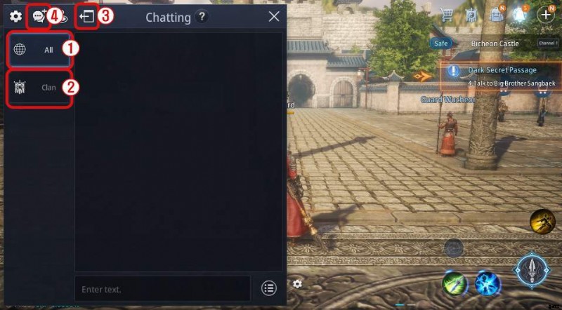 ミールの地でプレイヤー同士がコミュニケーションをとるのに役立つさまざまなチャット モードが用意されています。 チャットのガイド チャット <オール> サーバー チャットを表示し、サーバー内の全員と会話します。 クラン チャットを表示して、クランのメンバーと会話します。 左側のタブを表示または非表示にできます。 必要なチャット タブを追加できます。 <オール> キャラクターの名前を入力して、そのキャラクターのチャットをブロックします。 ブロックされたユーザーのリストを表示します。 チャット ウィンドウの不透明度を調整できます。