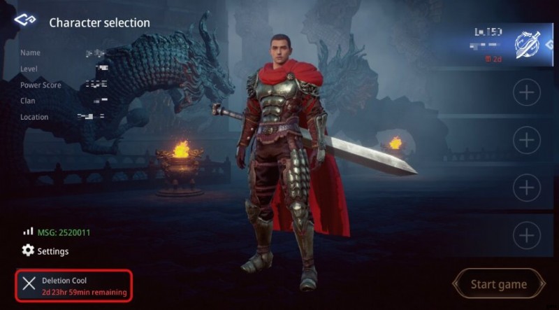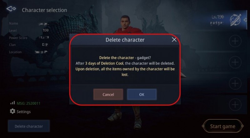 キャラクターの削除には 3 日間の猶予期間があり、その間は削除を取り消すことができます。