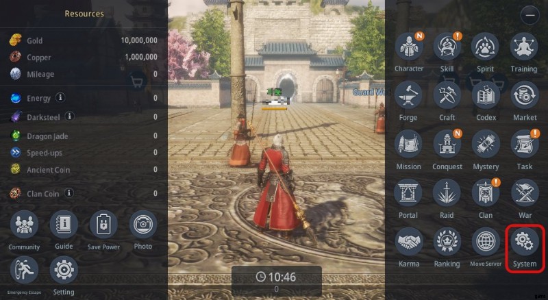 - Mir 4 ゲーム画面の右上にある [メニュー]> [システム] アイコンをクリックします。