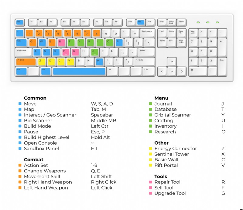 デフォルトのキー レイアウトと、ゲーム内で設定されていないが利用可能なキーを把握するために使用できるカスタム キーを表示します。 カスタム キーボード ショートカット クリックして拡大… デフォルトのキーのみ