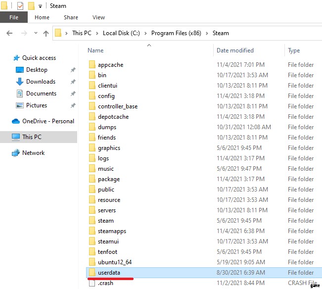 このフォルダー内に、「userdata」という名前の別のフォルダーがあります。