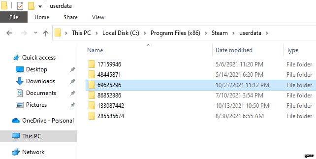 アクセスすると、マシンを使用してログインしたすべてのアカウント Steam ID3 (各フォルダがアカウント) が表示されます。