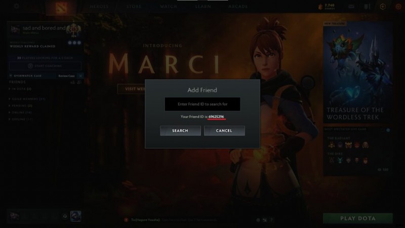 Steam ID3 はニックネームのすぐ下、「フレンド ID」タイトルの横にあります: