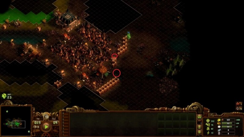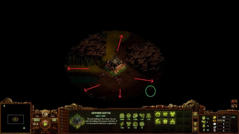 ゲームの開始時には、壁や塔を建設するのに十分なリソースがありません。植民地の防御は、最初は兵士によって保証される必要があります。