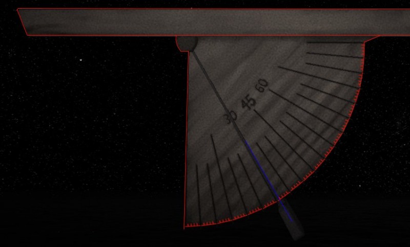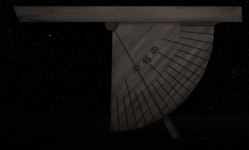 夜は、北極星を使用して緯度を決定できます。四分円を星に向け、右クリックして角度を確認します。この角度は、現在の緯度と直接相関しています。