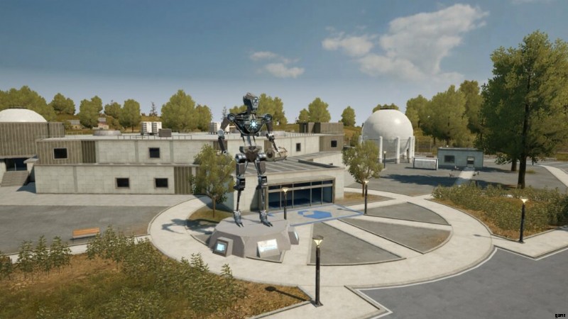 ラボは巨大な研究施設で、入口には見事なロボット像が設置されています。屋上から 1 階または 2 階までさまざまなルートを選択できます。