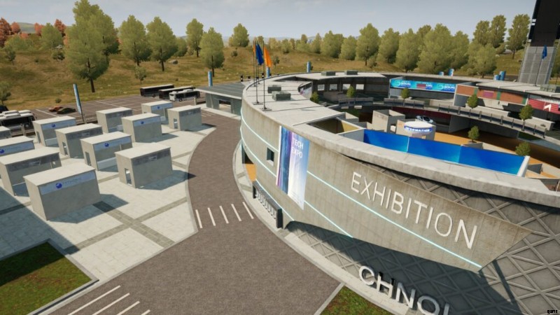 展示ホールは、小さなブースと大きな展示エリアが設置されたランドマークです。