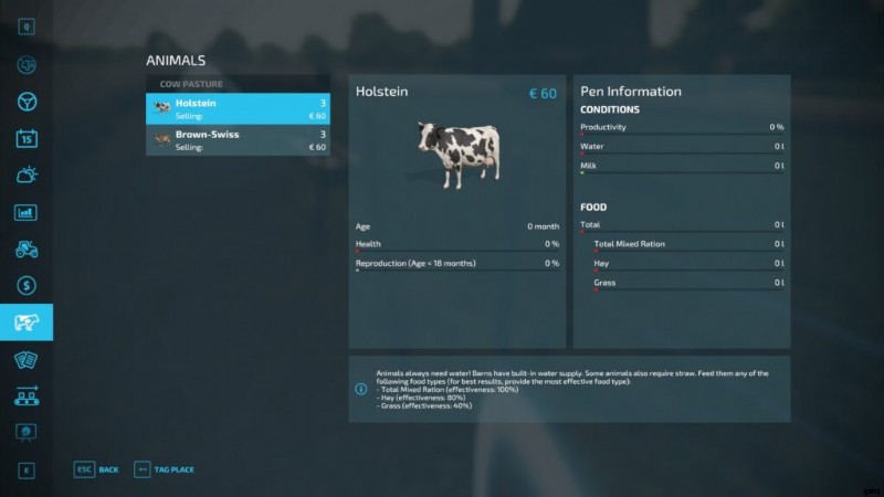 「ESC/一時停止」を押すとゲーム内メニューが開き、農場を管理するための重要なすべてが表示されます。ビデオの説明には、シンボルの凡例もあります。必要な場合は印刷してください!
