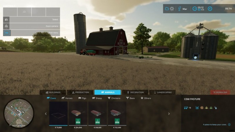 動物の種類ごとに分かれており、畜産を始めるために必要なものがすべて見つかります。利用可能なすべての動物種の動物の囲いに加えて、養蜂に使用される特別なオブジェクトと、4 本足の仲間のための犬小屋があります。