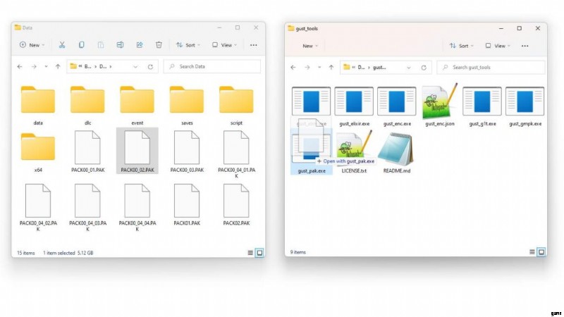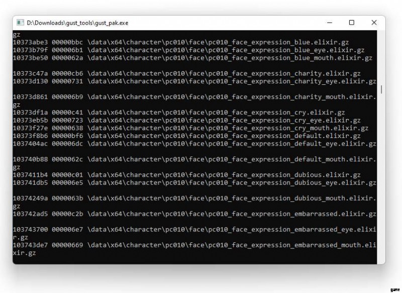 - 「PACK00_02.PAK」を gust_tools にドラッグし、gust_pak.exe で開きます