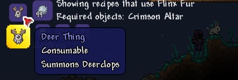 このボスを召喚するために戦わなければならない前提モンスターはありません。ただし、Deerclops の強さのために、Eater of Worlds または Brain of Cthulhu を倒した後まで待つのが最善かもしれません.