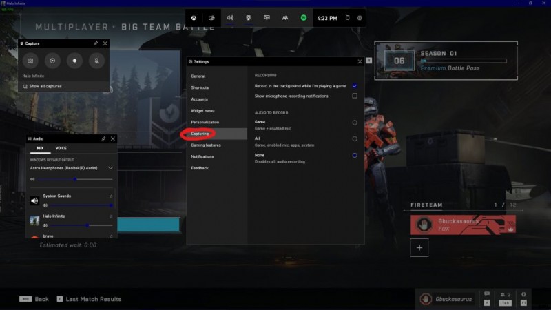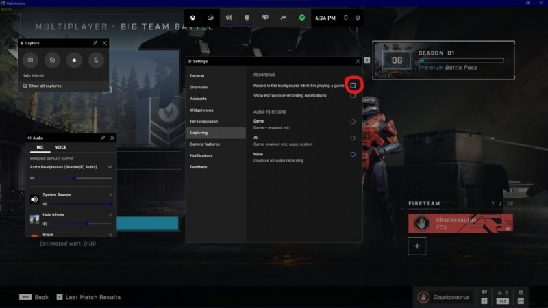 Halo Infinite – デスクトップ キャプチャ/バックグラウンド レコーディングを無効にしてパフォーマンスを向上