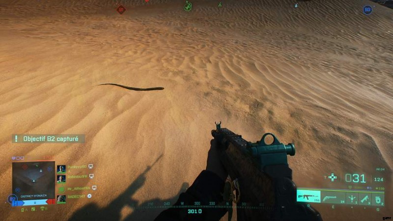 砂時計の B2 と B3 の間、砂の上、砂丘の B2 のすぐ横にヘビがいます。ヘビは 20 メートル後に姿を消し、コースの最初に再び現れます。