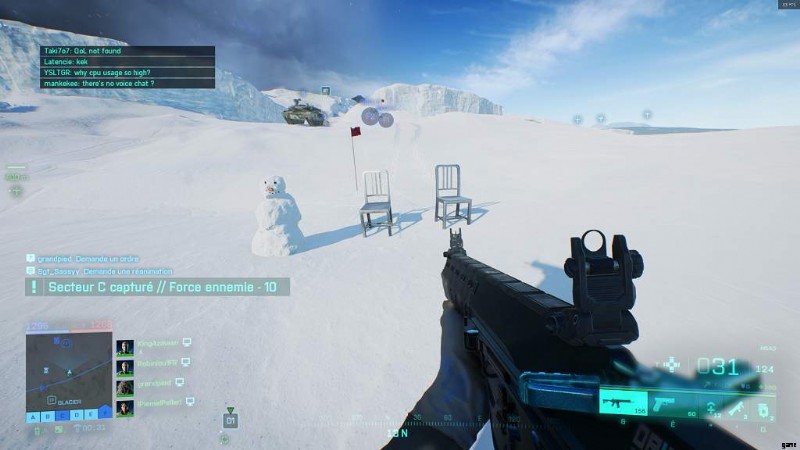 途中で 2 つの椅子と雪だるまを見つけることができます。