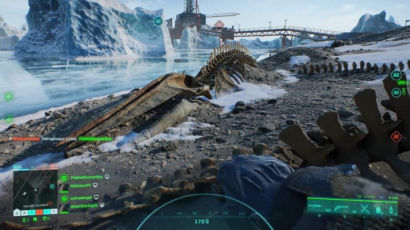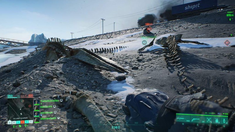ブレイクアウェイ マップでは、ポイント A の岸にある凍った湖の岸に座礁したクジラの骨格を見つけることができます。