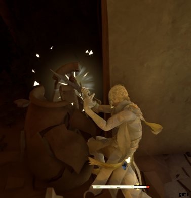 - 攻撃で花瓶を壊し、仮面を拾う。