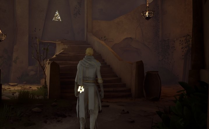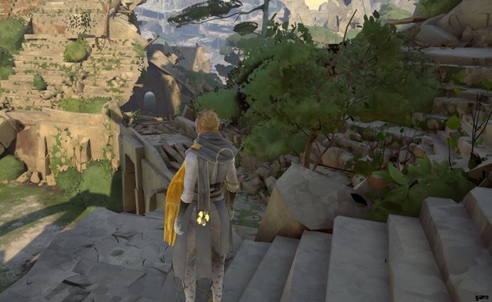 - 頂上に着いたら、石の階段と通路をたどってください。