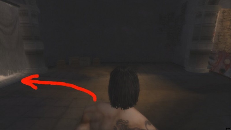 カーテンで覆われた壁に穴が開いているはずです。そこに入り、噴水に向かって進みます。代わりに上に行くと、ストーリーが続きます。