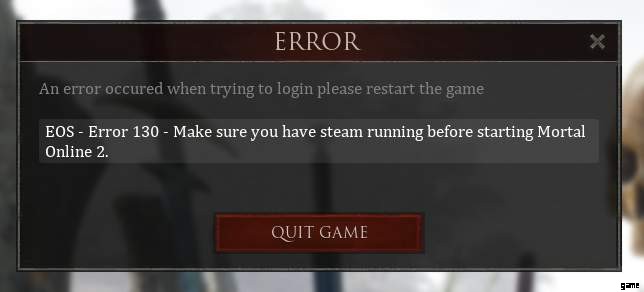 ゲームバージョン「0.1.10.5」でのログイン時のEAC/EOSエラーの問題を修正する方法。 「EOS – エラー 130 – Mortal Online 2 を開始する前に、Steam が実行されていることを確認してください。」