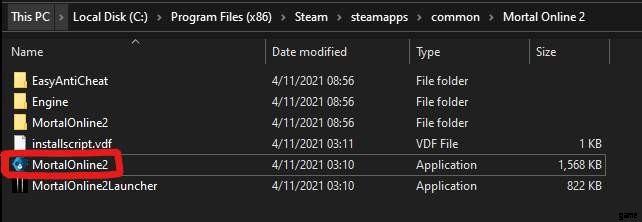 - 「MortalOnline2」を実行します。アイコンは青色で、EAC ロゴが付いています。