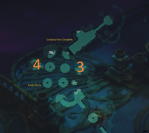 その保管庫にアクセスするには、他の 3 つの保管庫に 3 つのサチュを正しい方向に配置する必要があります。