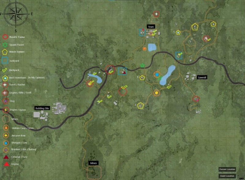 初日に車を受け取る これにより、時間を大幅に節約できます。 また、どこに行くのかを知る必要がある場合に備えて、簡単な地図を以下に示します: <オール> 左側のガソリンスタンド(青い広場)へ それから北にある隠しキャンプへ。 (オレンジ色のマーカー) それから町へ。
