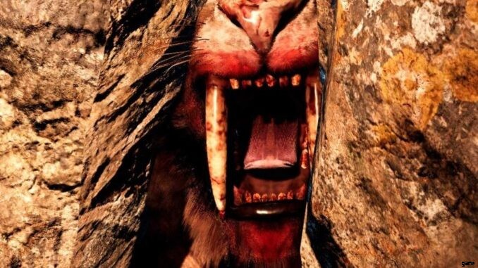 Another Cave Lion and your future best-friend Sabretooth will come into view. You can ignore the Cave Lion for now, and focus on bringing the Sabretooth down to half health.我慢して。 You can lure both cats into view by backing down to the main platform. Keep all three entrances to the cavern in view so you know when to run back up to the “safe” zone.