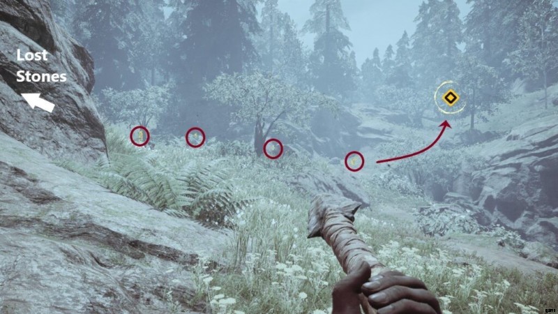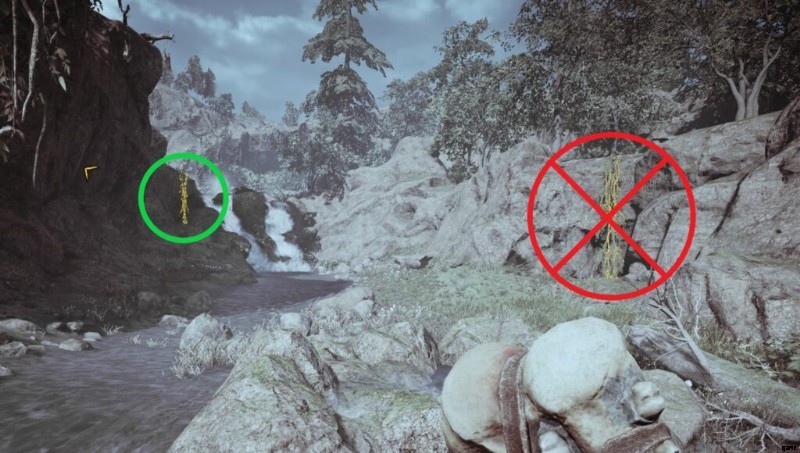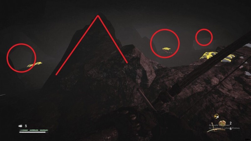 篝火を手に入れたら、バンテージを使って徘徊するオオカミを探しましょう。クエスト マーカーをたどると Prashrawa's Birth に向かいますが、そこには 3 つの Udam がキャンプしている可能性があります。代わりに、丘を左に滑り降りて、下の谷を渡ります。反対側を登り始めたら、クマに耳を傾けてください。それがあなたを見つけたら、谷に滑り降りて、Prashrawa's Birth の反対側に回ってください。