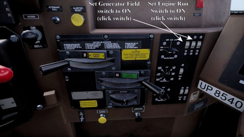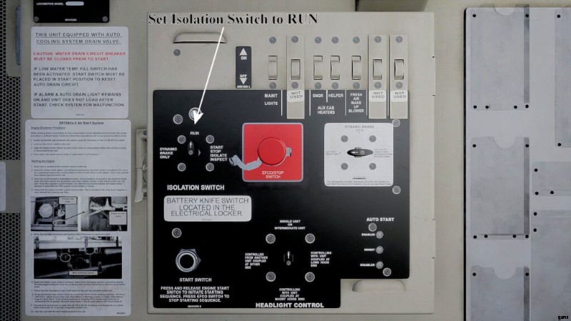 注:一部の始動手順には、キャブの後壁にあるコントロールが含まれます。これらは座ったままアクセスできますが、立って後ろの壁まで歩いたほうが現実的だと思います.