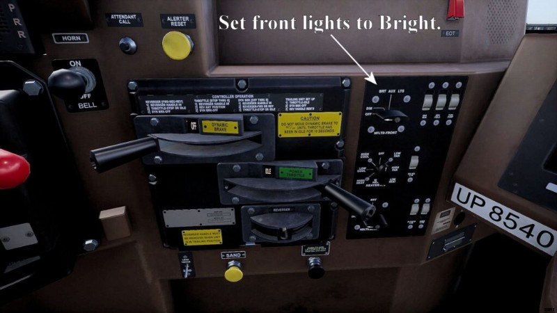 スイッチを回して (または>H<キーを押して) ヘッドライトを明るくします