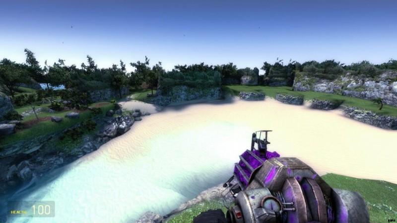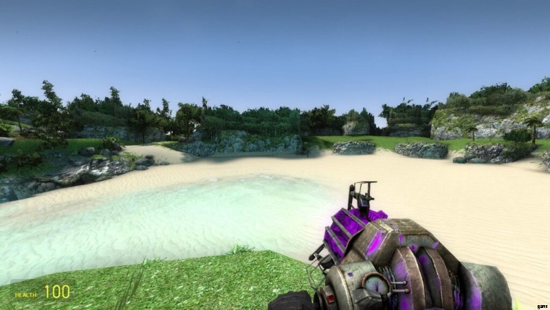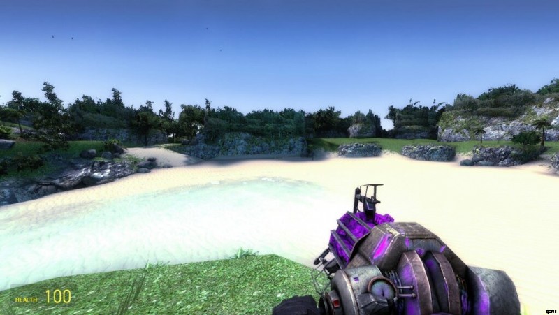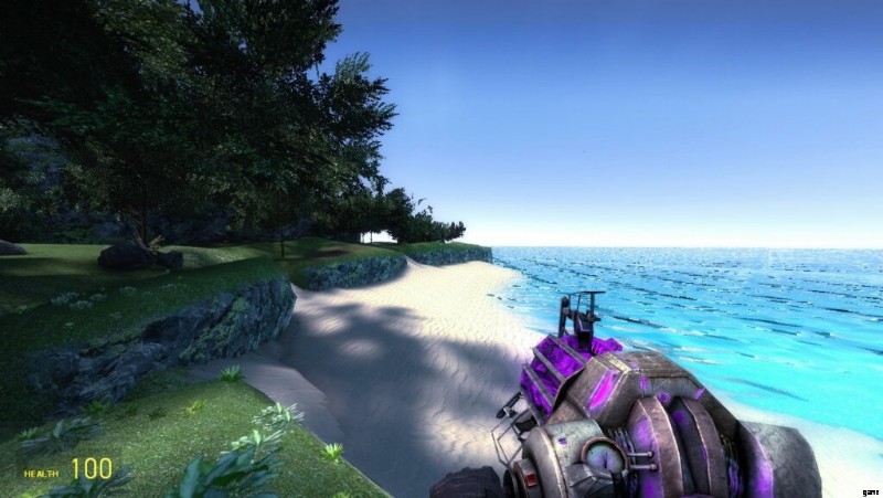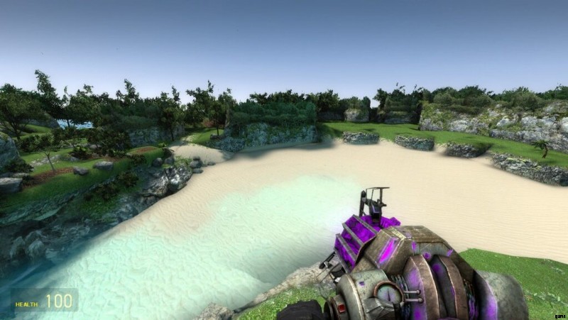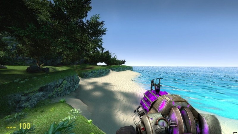 したがって、gm_bigisland はマップの成功であることは間違いありませんが、私が決して好きではなかったものがあります (私の意見では、それを一粒の塩で考えてください)。青みがかったカラー フィルターと、砂のような非常に明るいテクスチャでの過剰なブルームが例です。