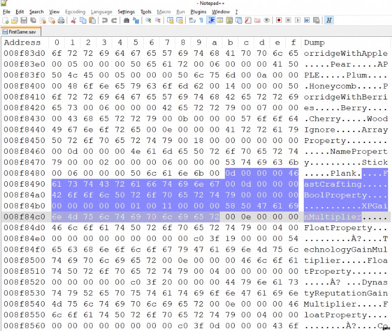 あまり役に立たない Reddit の投稿に気付きました。Fast Crafting が有効になっているものを、作成後に保存ファイルに挿入できることをほのめかしています。数時間を費やした後、これを自分の保存ファイルと作成した新しい保存ファイルに繰り返し複製することができました.ただし、これがパッチで引き継がれるかどうかはわかりません。手順は非常に簡単ですが、ある種の 16 進エディターを使用して保存ファイルを編集する方法を知る必要があります。私は個人的に Notepad++ と HEX-Editor プラグインを使用していますが、好きなものを自由に使用してください。