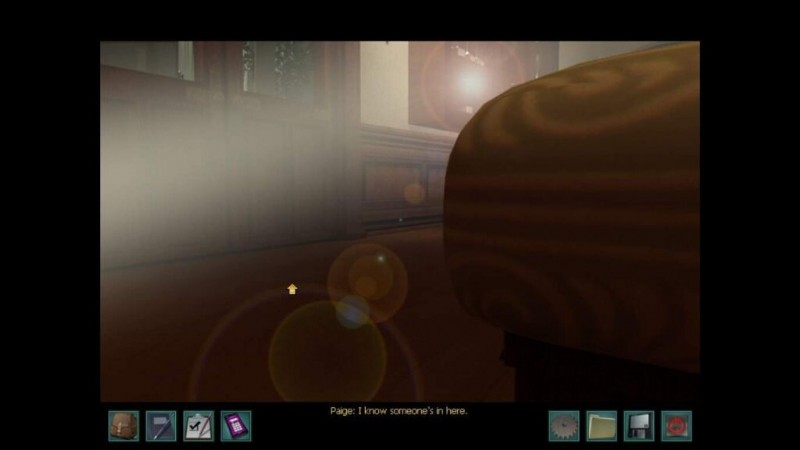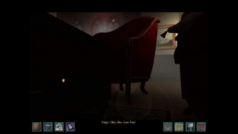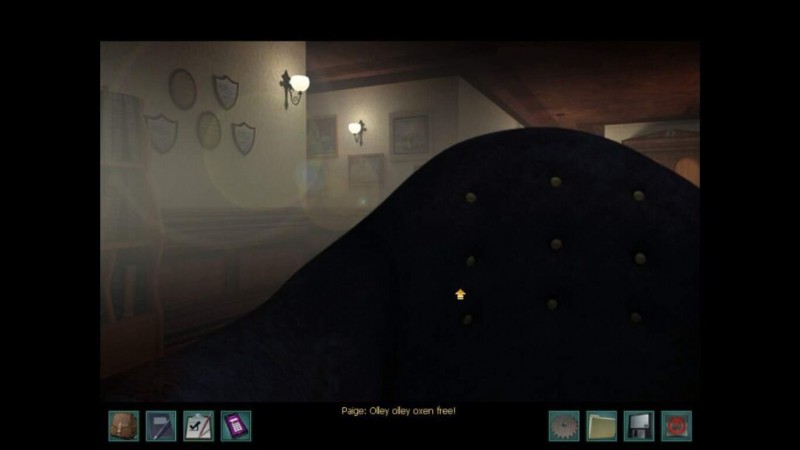 ペイジが声をかけたら、ドアのそばにある青い毛布がかけられた椅子をクリックするチャンスがあります。これにより、ナンシーは後ろに隠れます。ペイジが去るまで隠れていてください。