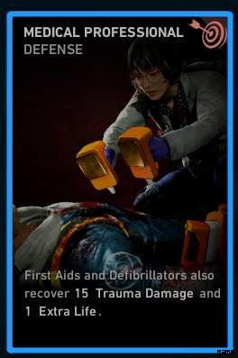 カード 経験豊富な EMT は、回復対象に最大 HP の 20% を与えます。各マップの開始時に、自分を含む各チームメイトに包帯または鎮痛剤を与えます。彼らを撃ち、彼らの健康状態が完全である場合は謝罪してください。