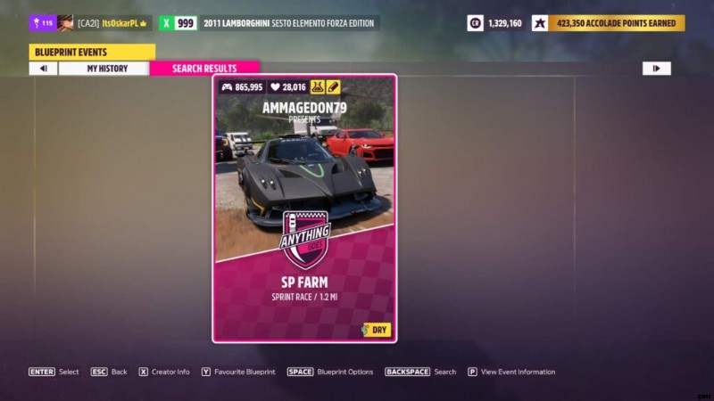 これは必須ではありませんが、最大のポイントと効率のために、これに使用するのに最適な車は Huayra BC Forza edition 2016 (Pagani) と Sesto elemento forza edition 2011 (Lambo) です。