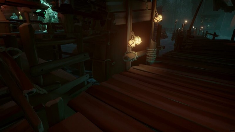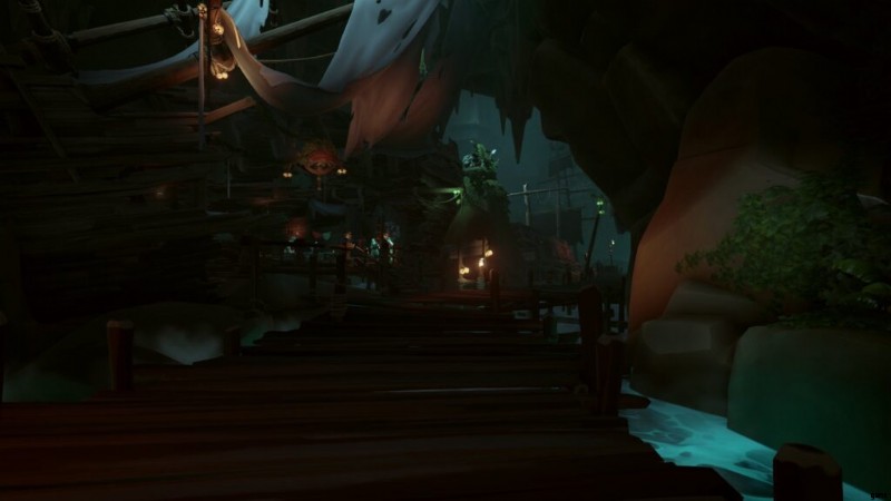 私たちは伝説の酒場に入り、階段近くの水の中にあるこのコーナーを探します (はい、伝説の海賊専用です)。