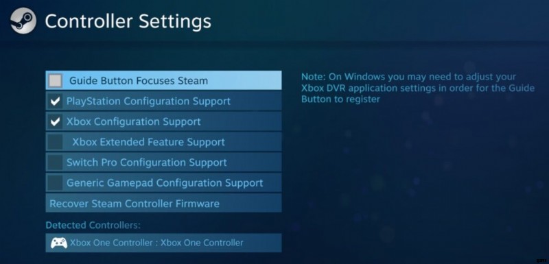 Steam 入力が無効になっている Xbox One コントローラー: