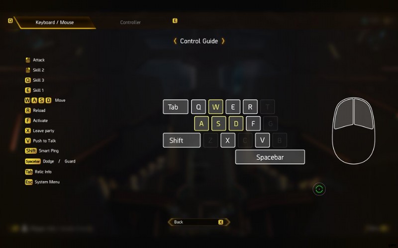 コントロールは、Esc ボタンでアクセスできるメニューにあります。