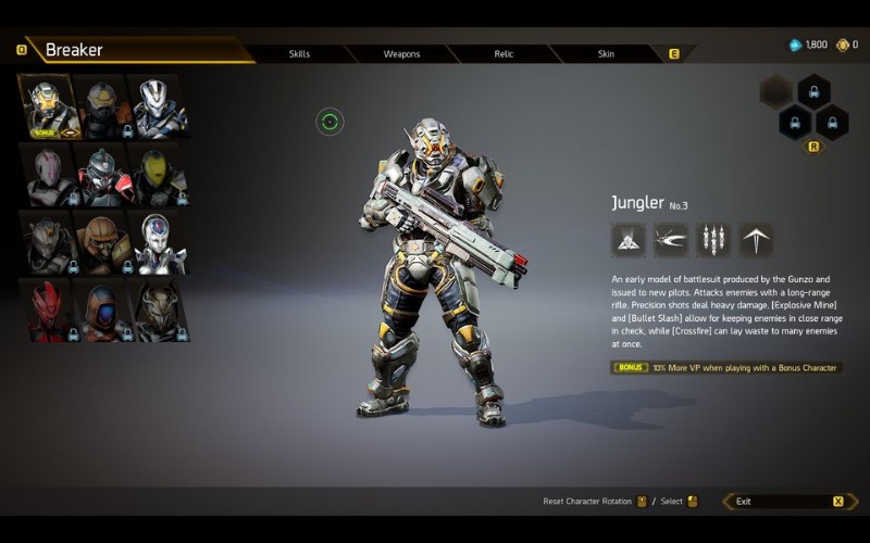 各ブレイカーは異なる武器で開始し、各ブレイカーには独自のスキル セットがあります。
