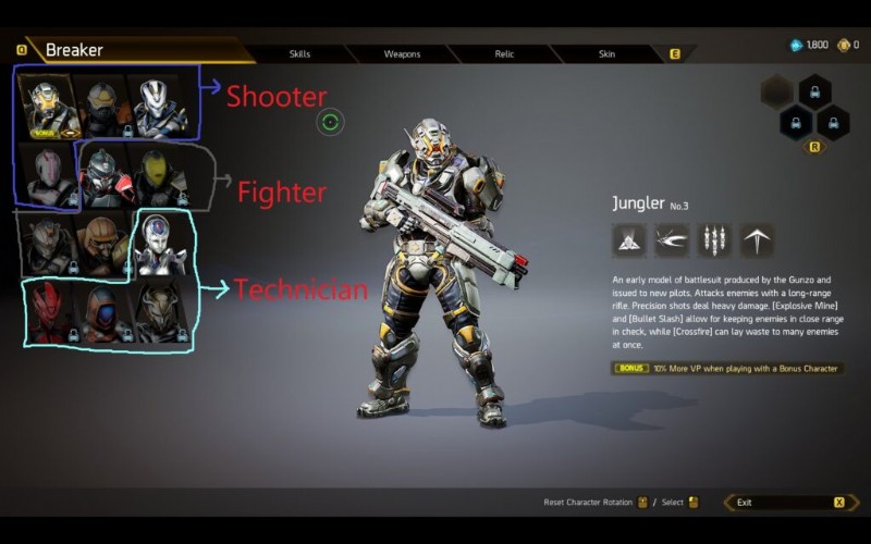 ブレイカーには、シューター クラス、ファイター クラス、テクニシャン クラスの 3 つのクラスがあります。