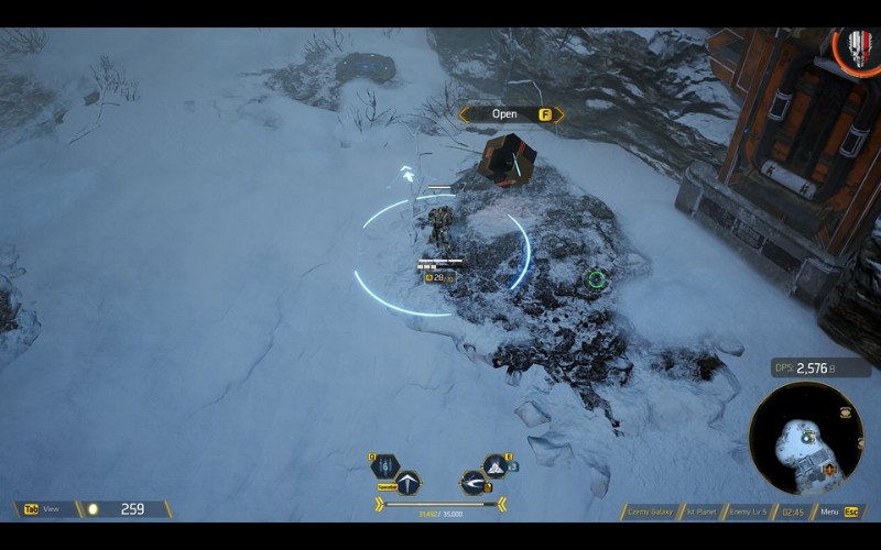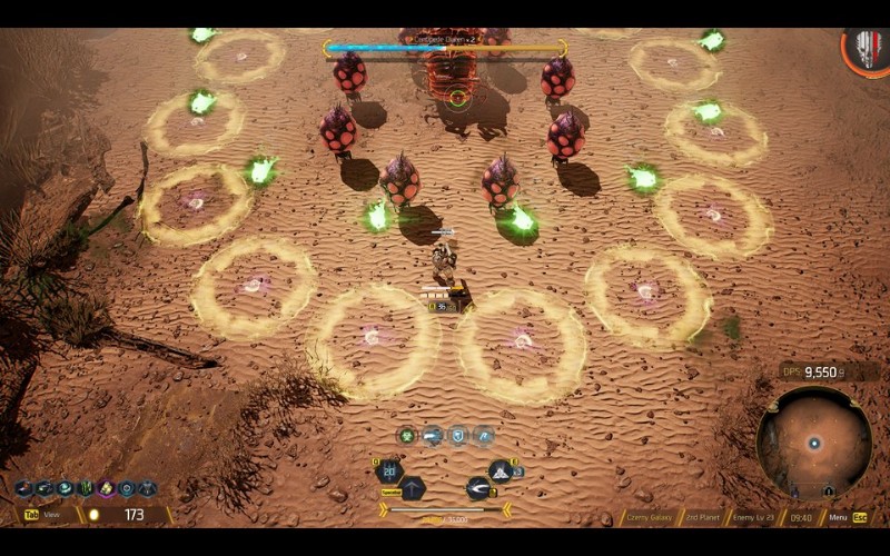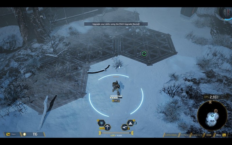 右下はミニマップ。あなたは中心にいます。感嘆符の六角形は、後でお見せするスキル アップグレード ステーションです。