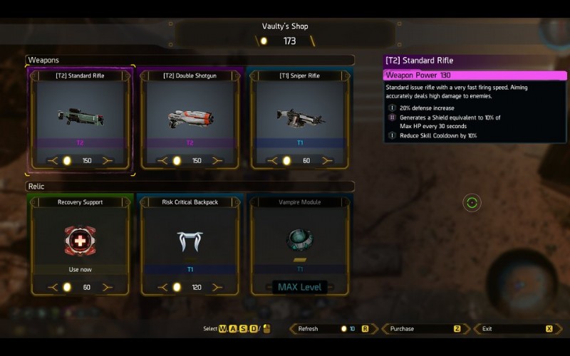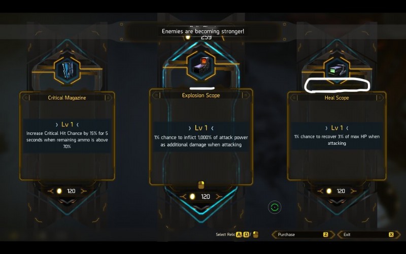 武器やレリックごとにコインを使ってリフレッシュすることもできます。更新するための価格は、試行ごとに増加します。