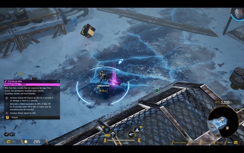 ドロップ武器にはランダムな効果が付与されています。 Tier-1 武器には最大 2 つの追加効果を持たせることができます。効果はティア1レリックからランダムに選ばれます(複製可能)。 Tier-2 武器は 130% の追加の武器パワーを付与します。また、最大3つの効果を付けることができ、Tier2レリックまで可能(複製可能)です。 Tier-2 武器は 150% の追加の武器パワーを付与します。また、エフェクトは最大4つまで装着可能で、ティア3レリックまで可能(複製可)。この画像は、2 つの Tier 2 エフェクトと 1 つの Tier 1 エフェクトが取り付けられた Tier 2 ミサイル ライフルを示しています。シングルプレイヤーモードでは、o.