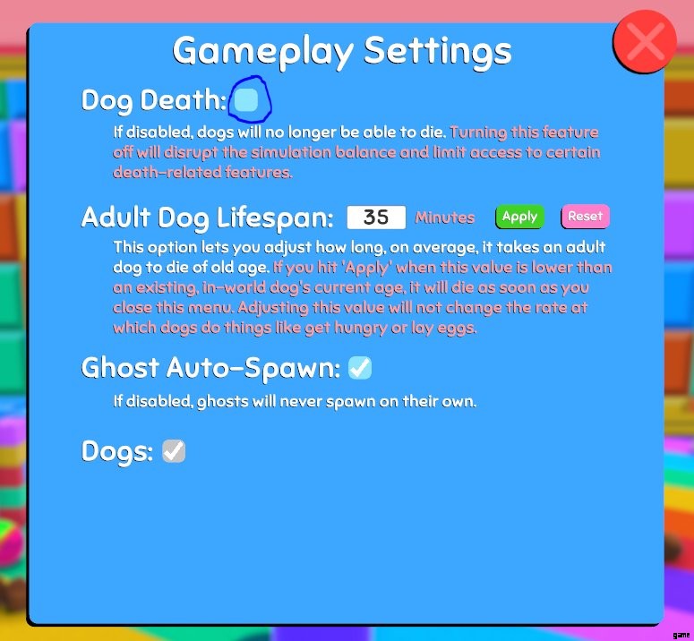 それをクリックすると、このメニューが表示されます。犬の死のチェックを外せば、ウォブルドッグの死はもうありません!