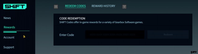 - シフト コードを入力するには、[報酬] (ギフト アイコン) を選択します。次の画面が表示されます。