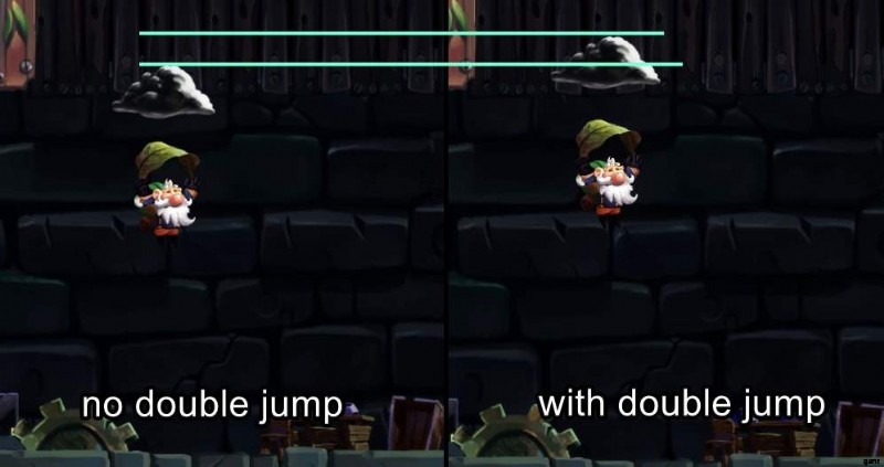 炎の上にいるときは、その上を飛んですぐに死なないように、すばやく「ダブル ジャンプ」して少し高く浮かびましょう。