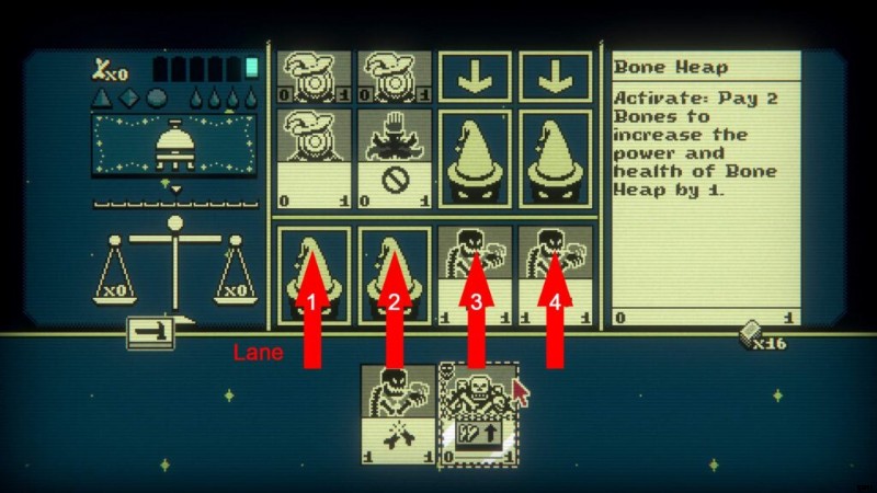 - ボーンヒープをレーン 3 または 4 に置きます。すべてのボーンを消費してダメージを増やします: