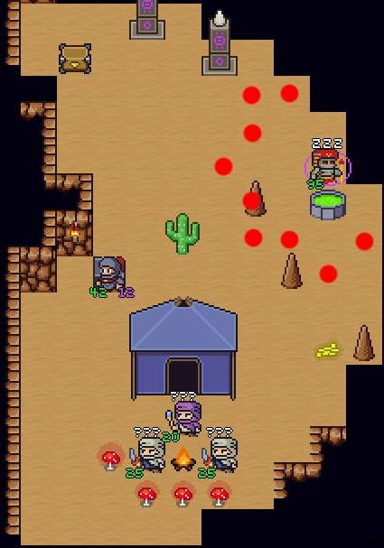 - 有利な地形を使用: 見つけた場所から敵をおびき寄せながら、有益な地形の特徴に誘い込むことを検討してください。不安定な地形は、物理攻撃が 1.5 倍のダメージを与え、繰り返し使用できます。可燃物は、火の攻撃に範囲ダメージを追加できます。ウォーター リードとショック リードは、稲妻に対して同様の効果を発揮します (不安定であることも忘れないでください!)。雲は LoS をブロックし、敵があなたを見るのを防ぐことができますが、あなたはそれらを見ることができます (そして水を使って自分のものにすることができます!)。ファイア シュルームやその他の被破壊物は痛烈に爆発します。噴水は戦闘中のリソースを提供します。ピットはノックインした敵を即死させ、逃げ道を与えます。柱、コーナー、ループは、LoS を壊したり、撤退の選択肢を与えたりする可能性があります。敵は移動を選択する際に危険な地形を考慮しません!
