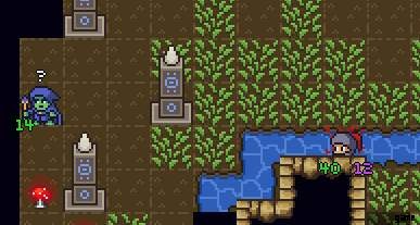- この遠隔ユニットを近づけることができません: 地形が単に不利な場合、またはすでに悪い位置にいる場合は、そこに近づくことを余儀なくされる可能性があります.広いオープンエリアと真の壁がないレベルは、これを引き起こす可能性があります.特に、ユニットが「賢く」行動し、LoS で最も遠いタイルに移動している場合、最小射程は 3 です。近くに他の敵がいなければ、無害になる可能性があります。