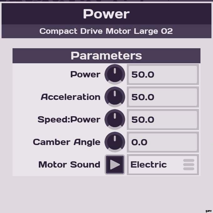 通常、ほとんどの新規プレイヤーが問題を抱えているのは、スピード:パワー比です。開発者が説明したように、この数値を下げると最高速度は速くなりますが、トルクは低くなります。この数値を大きくすると、トルクは高くなりますが最高速度は遅くなります。設計の違いにより、各ビルドには独自の最適な比率値がありますが、各ホイール サイズとエンジンの組み合わせには、チューニングの普遍的な開始値があります。小型エンジンの経験が不足しているため、大型エンジンにのみ価値を提供します。大型エンジンと小型ホイールの場合、開始値は約 15 にする必要があります。大型エンジンと中型ホイールの場合、開始値は約 30 にする必要があります。大型エンジンと大型ホイールの場合、開始値は約 40 にする必要があります。